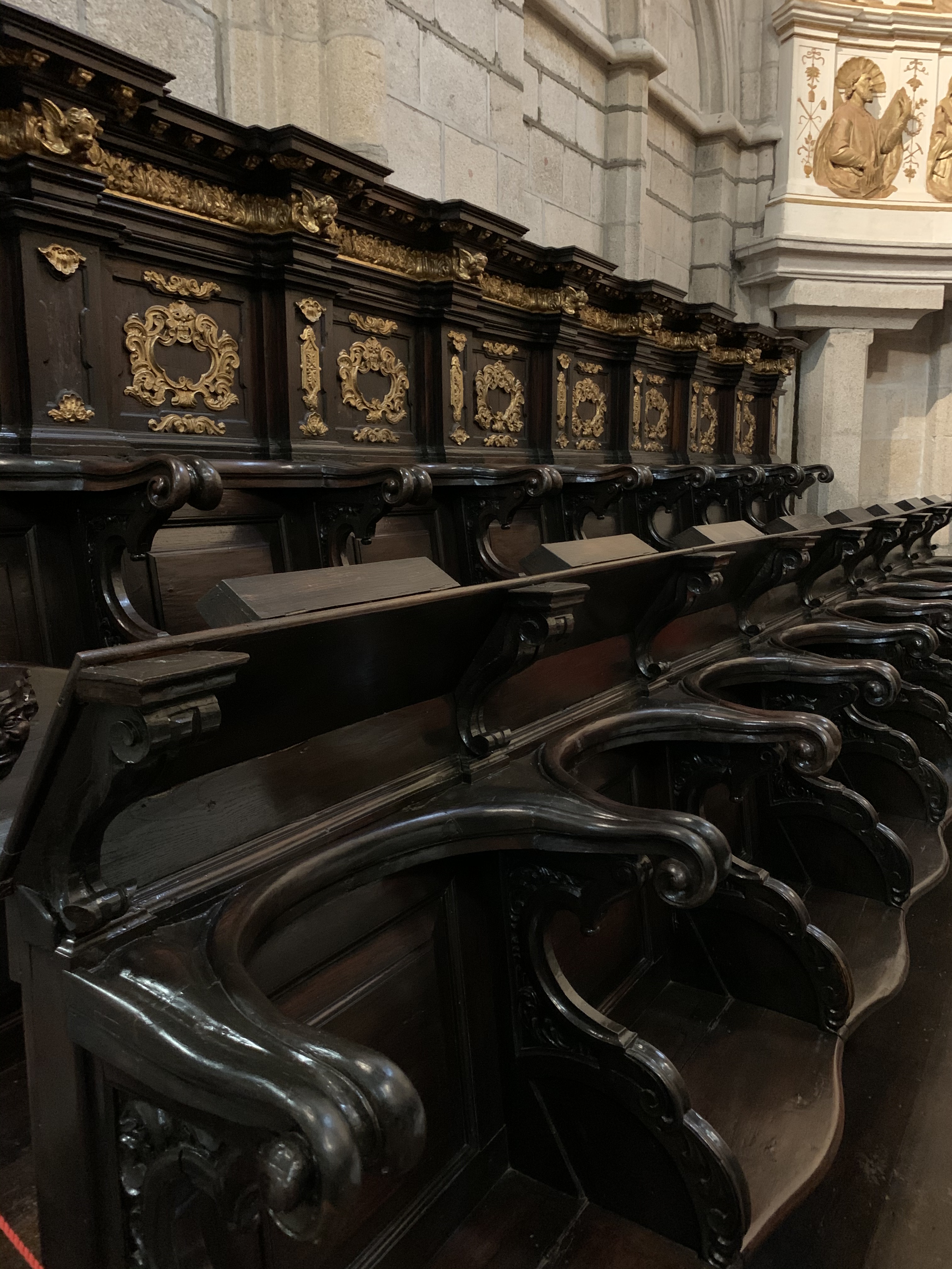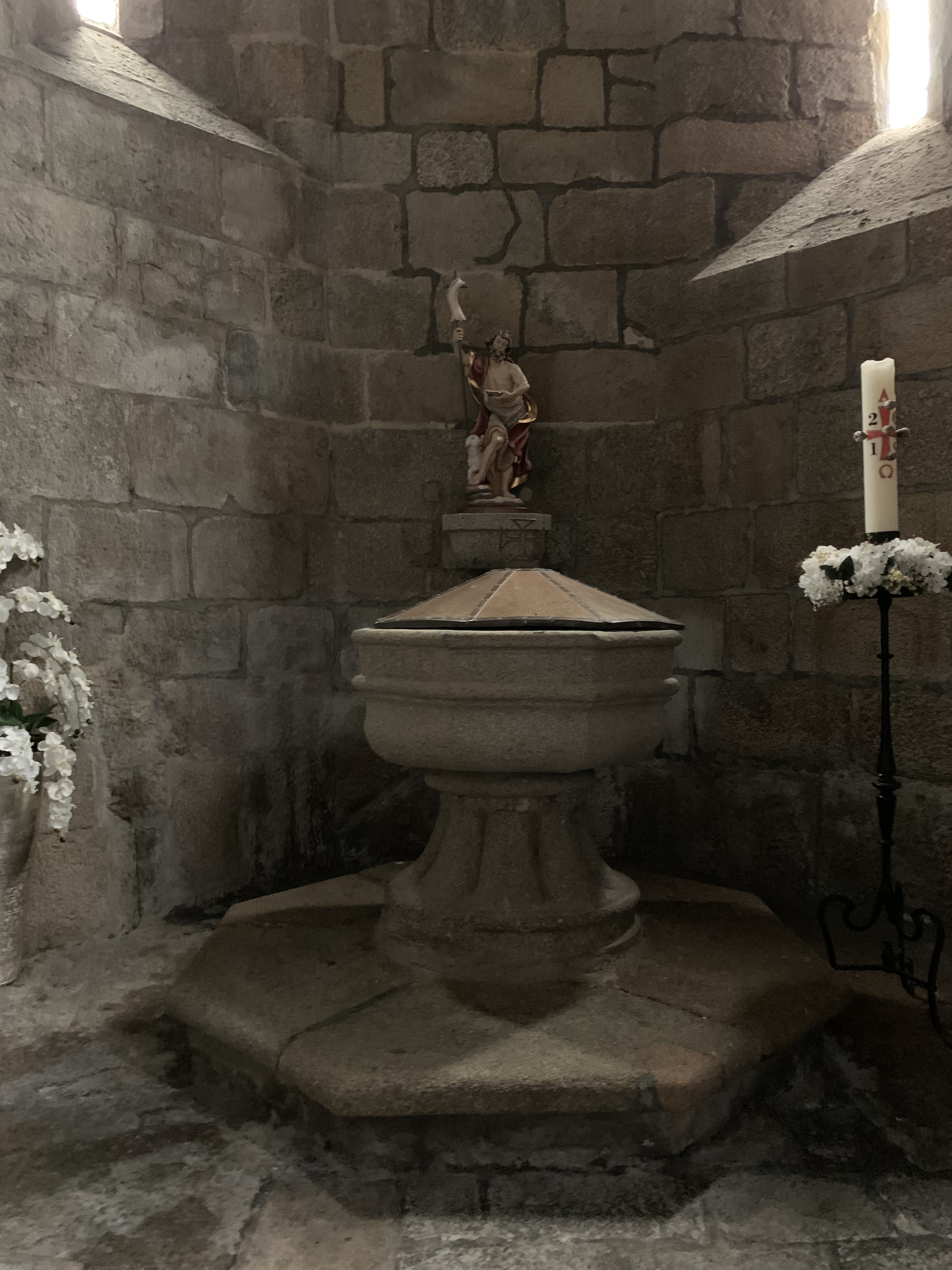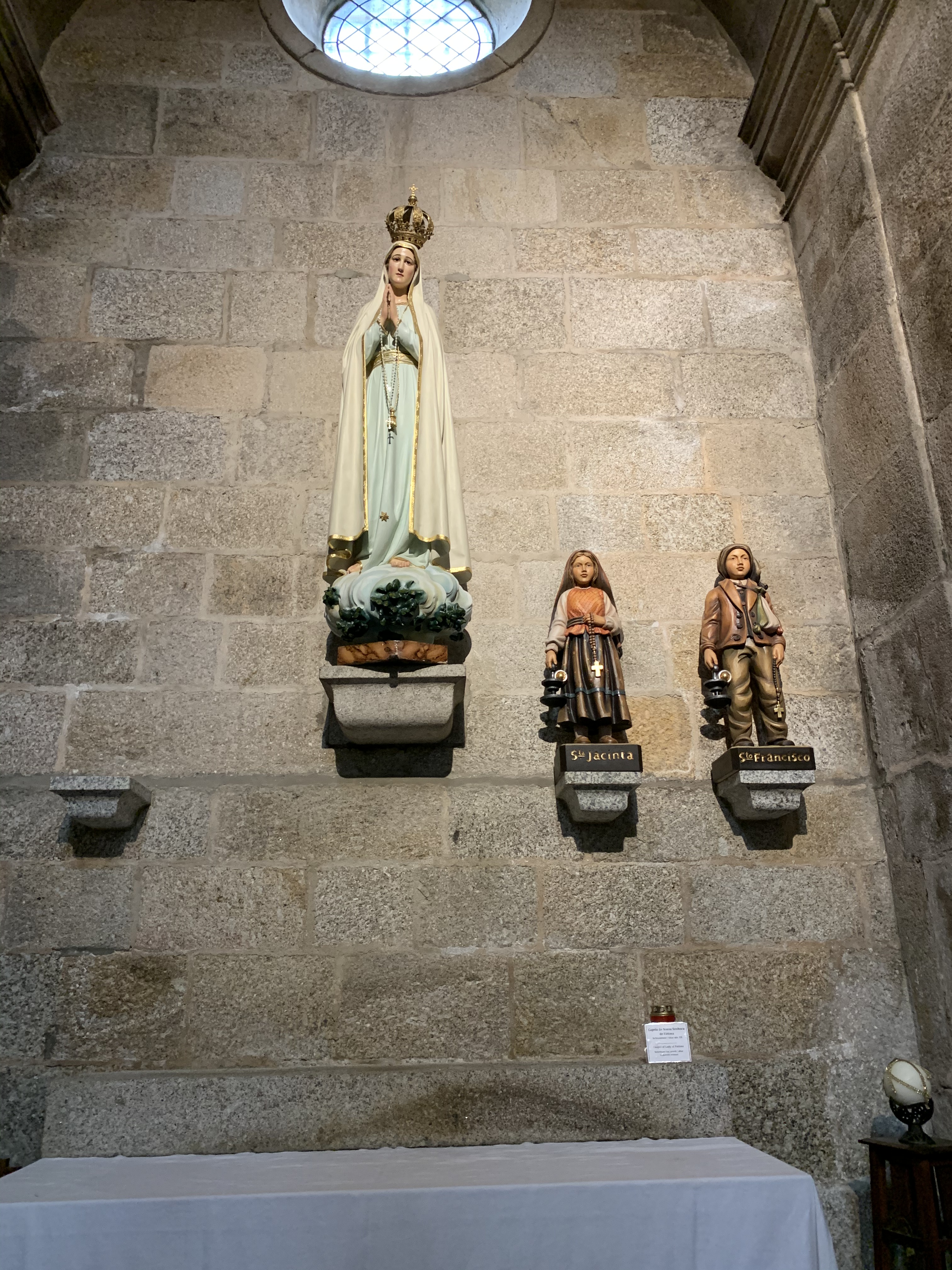 El edificio de granito destaca por su aspecto fortificado, erigiéndose hacia el cielo con pináculos y contrafuertes, que se intercalan con los elegantes elementos decorativos manuelinos. En el interior se puede admirar el retablo mayor, renacentista del siglo XVI, elaborado en piedra de Ançã, ejecutado por el taller de João de Ruão (Juan de Rouen) en Coimbra, dorado en el siglo XVIII y que está considerada como una de las mayores obras de escultura del periodo más tardío del Renacimiento.